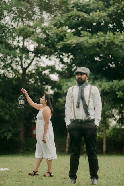 The Baker and his Wife are central characters, driven by their desire to have a child, which is thwarted by a witch’s curse. Their journey into the woods symbolizes hope and sacrifice. The Baker, often portrayed as kind but insecure, struggles with moral dilemmas, while his Wife is assertive and determined. Their relationship evolves through challenges, showcasing themes of partnership and growth. The PDF script highlights their emotional depth, as they navigate the consequences of their wishes. Their storyline intertwines with other characters, illustrating the complexity of human motivation and the pursuit of happiness, making them relatable and poignant figures in the narrative.