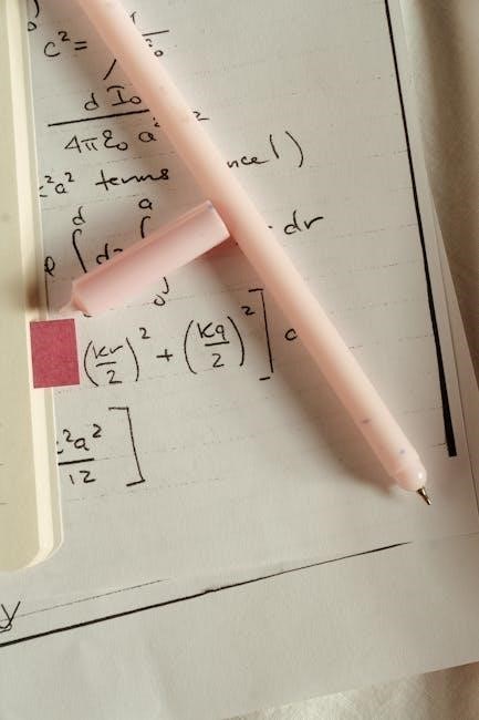 Equations balance mathematical statements; variables represent unknowns, while constants have fixed values. Solving involves isolating the variable using inverse operations, aided by PDF resources.